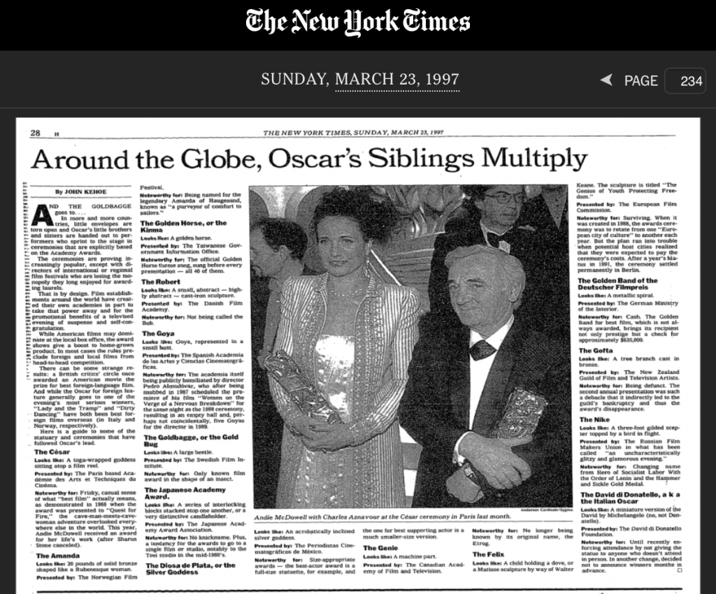 Las ceremonias se realizan con brillantez, profesionalismo y honestidad lo que le ha valido a la agrupación que el premio goce de prestigio y credibilidad como se asienta en el reportaje del prestigiado diario The New York Times de fecha domingo 23 de marzo de 1997, que con el título “Around the Globe, Oscar’s Siblings Multiply” en el que por México menciona a la Diosa de Plata de Periodistas Cinematográficos de México.